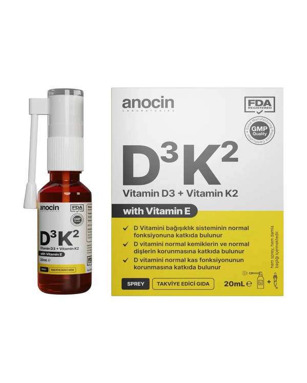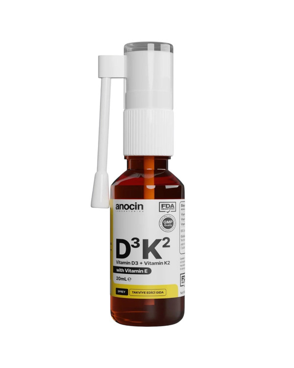 اسپری مکمل anocin D₃K₂ با ترکیب ویتامینهای D3، K2 و E، راهحلی سریع و مؤثر برای تأمین نیازهای روزانه بدن به این ریزمغذیهای حیاتی است.