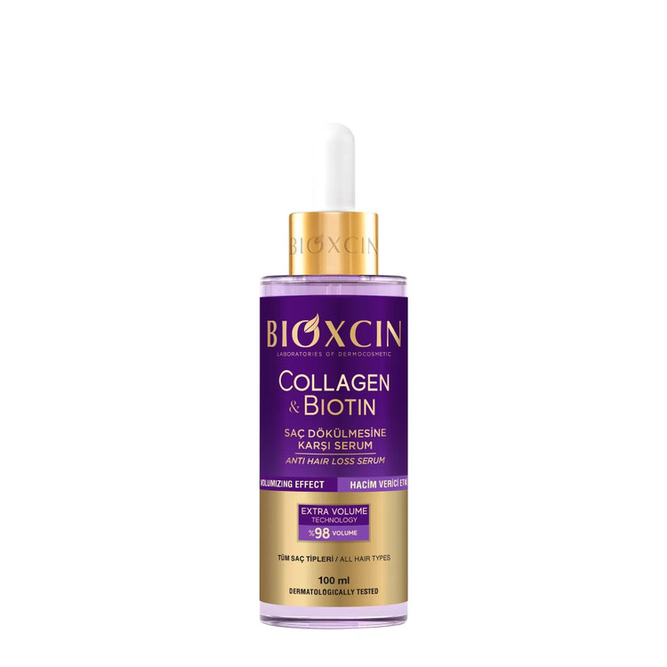 سرم حجم دهنده موی کلاژن و بیوتین بیوکسین با کلاژن هیدرولیز شده، بیوتین و پپتیدهای فعال زیستی، موهای نازک، کم حجم و ضعیف را حجم میدهد و تقویت میکند.